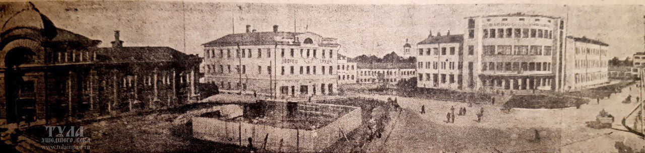 «Площадь Челюскинцев – одно из самых интересных мест в нашем городе. Слева высится огромное здание горкоммунхоза. В центре поднимается здание фабрики-кухни оружейного завода. Она построена как раз на том месте, где когда-то были старые торговые ряды. Немало кирпича и камней, полученных